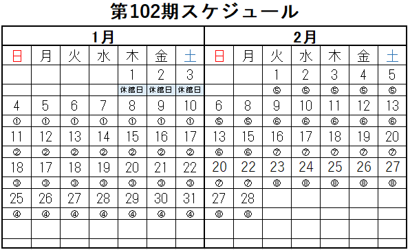 第102期スケジュール